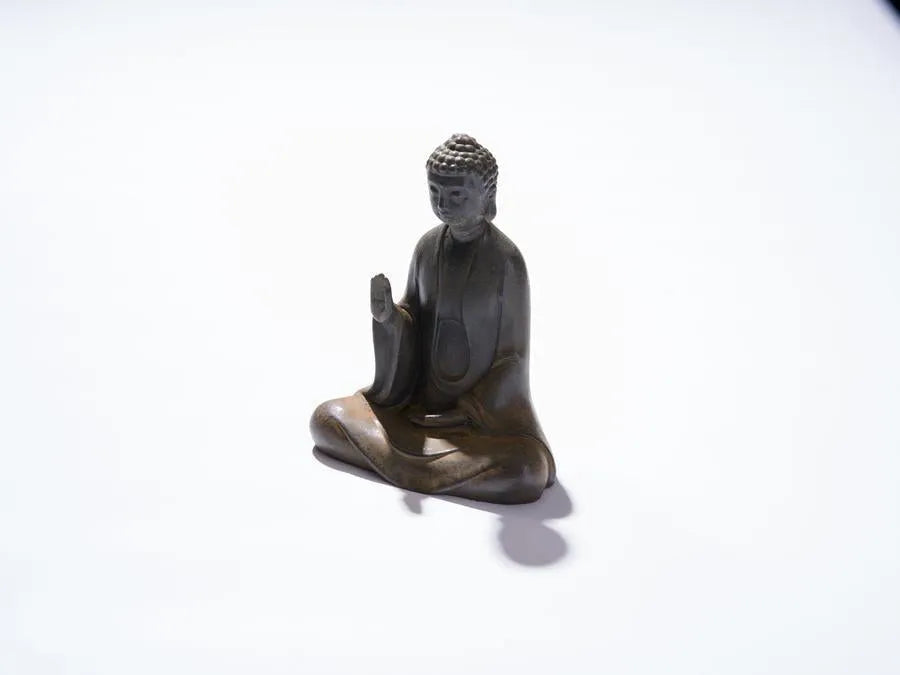 This Cast Iron Buddha Statue depicts the Buddha in the Palm Mudra (Abhaya Mudra), a gesture symbolizing protection, reassurance, and fearlessness. Cast in durable iron with a rustic finish, it carries both weight and grounding energy, making it a powerful addition to your meditation space, altar, or home décor.