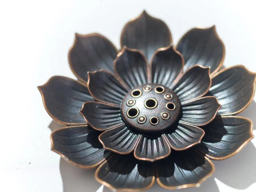 Made from durable metal with a detailed petal design, this holder supports a wide variety of incense sticks and adds a sacred touch to any altar, meditation corner, or living space.