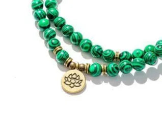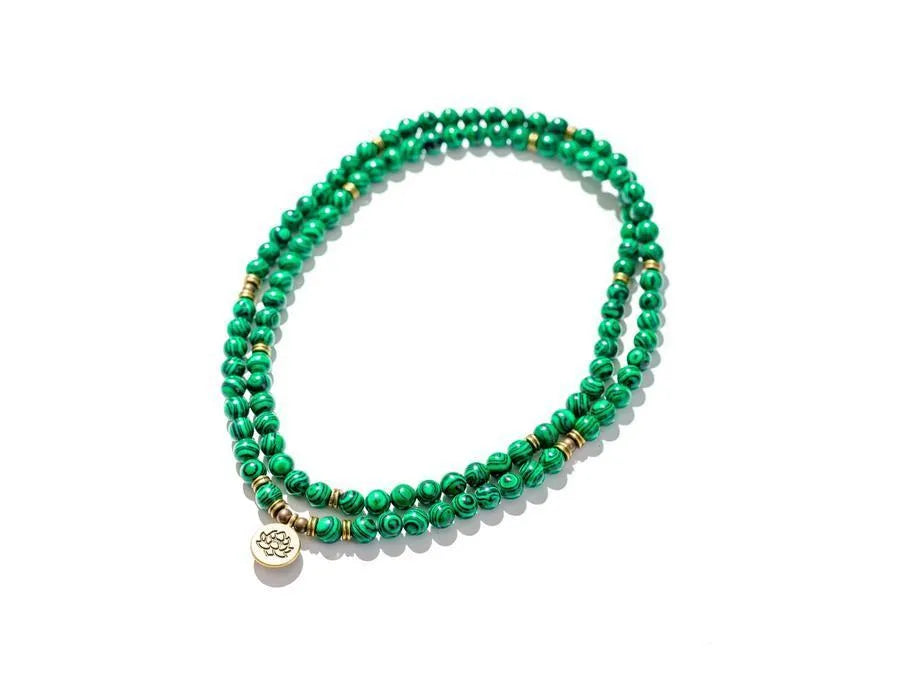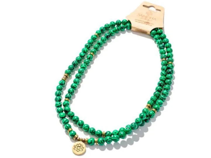 Our Malachite Mala is a hand-knotted string of 108 genuine malachite beads, created as a tool for meditation, mantra recitation, and mindful living. Known as a stone of protection and transformation, malachite has been cherished for centuries for its ability to absorb negative energy and inspire personal growth.