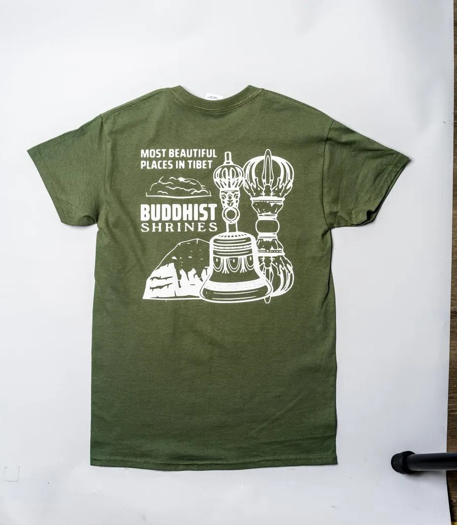 Take a journey through time with our Tibetan Travel T-Shirt, featuring vintage-inspired designs of 1950s, 60s, and 70s travel advertisements to Tibet and iconic Buddhist shrines. This unique T-shirt captures the nostalgic charm of retro travel posters while celebrating the beauty and spirituality of Tibetan culture. Crafted from soft, high-quality fabric, this T-shirt combines style, comfort, and a touch of wanderlust. Whether you're a travel enthusiast, a lover of Tibetan culture, or simply drawn to vintage aesthetics, this shirt is a wearable work of art. Features: Retro Travel Poster Designs: Showcasing vibrant, vintage-inspired artwork of Tibetan destinations and Buddhist shrines. Soft & Comfortable Fabric: Lightweight and breathable for all-day wear. Handcrafted at Sangha House: Each shirt supports recovery and mindfulness programs. Unisex Fit: Perfect for anyone who loves travel, art, and Tibetan culture. Ideal For: Travel Enthusiasts: Celebrate your love for exploration with a nod to iconic Tibetan destinations. Everyday Wear: A stylish, comfortable shirt for casual outings or travel days. Gift Giving: A unique gift for fans of vintage design, Tibetan culture, or Buddhist art. Wear the spirit of adventure and mindfulness with the Tibetan Travel T-Shirt, a journey in every design.