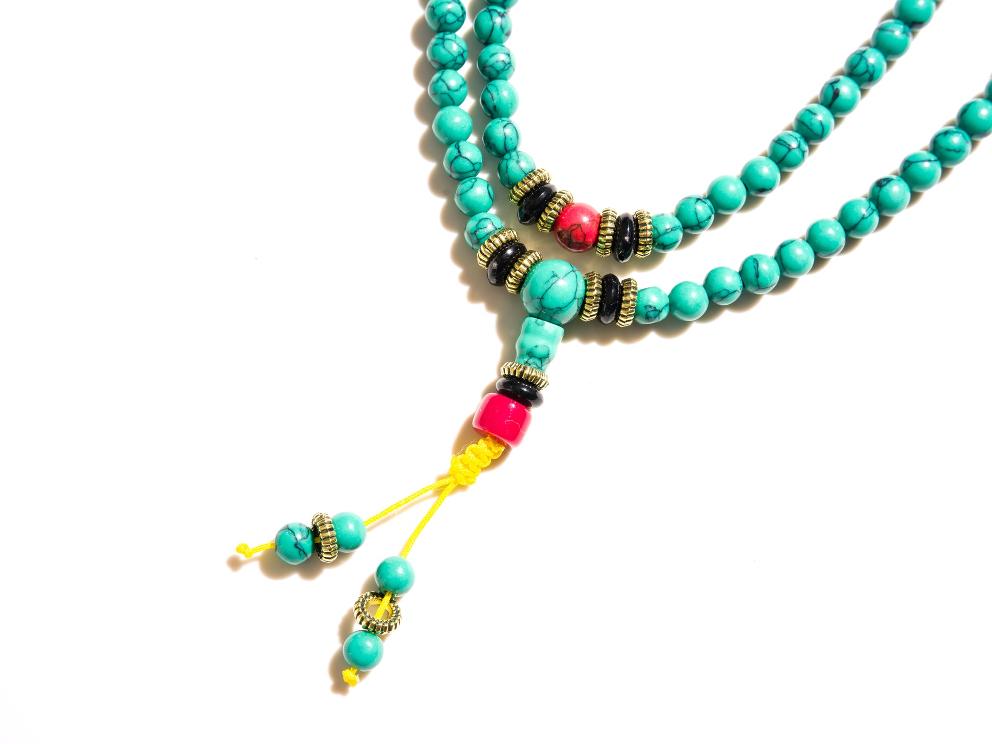 Infused with color, tradition, and calm energy, our Tibetan Turquoise Mala brings together ancient symbolism and modern craftsmanship. Hand-strung in the traditional Tibetan style, each bead carries the grounding energy of turquoise — a stone long revered for its healing and protective qualities.
