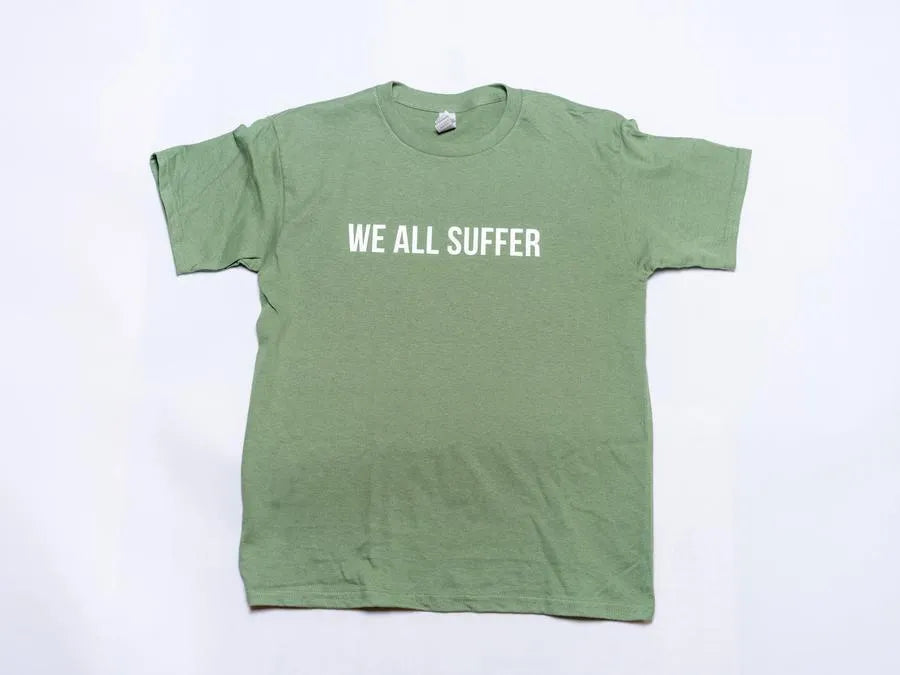 Embrace the shared human experience with our We All Suffer T-Shirt, a bold and compassionate statement that reminds us of our collective journey through life’s challenges. Designed to spark awareness and empathy, this T-shirt encourages understanding and connection in a world that often forgets our shared struggles. Crafted from soft, premium fabric, it’s as comfortable as it is meaningful—perfect for everyday wear, mindfulness practices, or as a conversation starter about resilience and compassion. Features: Empowering Message: "We All Suffer" design highlights the universal nature of life’s challenges, fostering empathy and understanding. Soft & Durable: Made from high-quality materials for a comfortable fit and long-lasting wear. Handcrafted Quality: Designed with care to reflect mindfulness and intention. Unisex Fit: Versatile style for anyone who values compassion and resilience. Ideal For: Mindfulness Advocates: A wearable reminder to embrace compassion and shared humanity. Everyday Wear: Stylish and comfortable for casual outings or reflection. Gift Giving: A meaningful gift for friends or loved ones who value empathy and awareness. Wear the message of connection and compassion—celebrate our shared humanity with the We All Suffer T-Shirt.