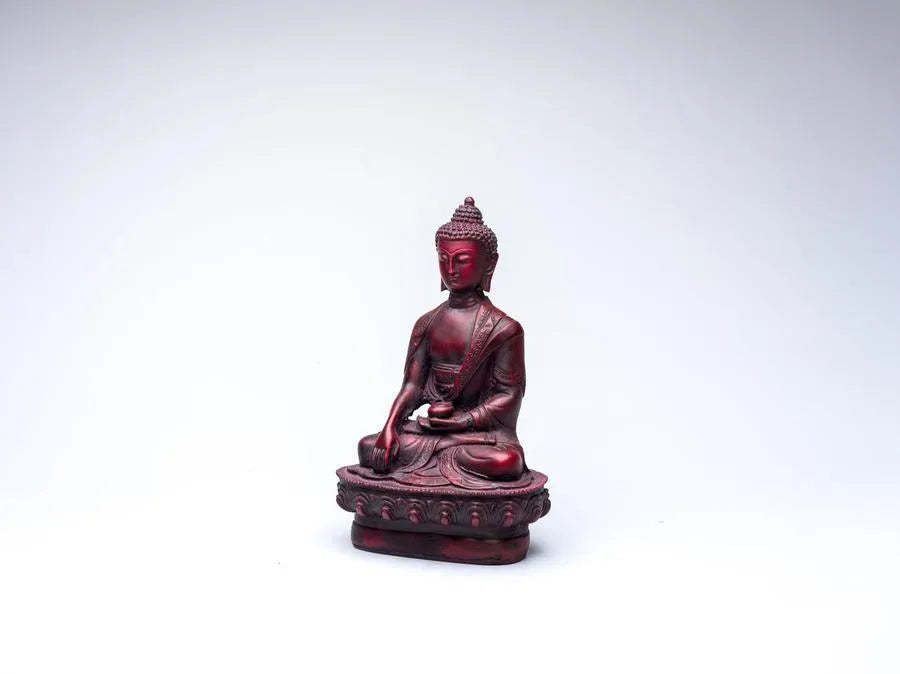 Invite tranquility and timeless wisdom into your space with our exquisite Shakyamuni Buddha Statue, meticulously crafted from rich antiqued resin. This beautifully detailed statue, depicting Shakyamuni Buddha in a serene meditative pose, is a symbol of peace, enlightenment, and spiritual awakening. Handcrafted by the residents and volunteers at Sangha House, each statue embodies the dedication and care of its creators. The vibrant red resin not only adds a touch of elegance and warmth but also enhances the intricate details of the Buddha's features and robes, making it a captivating centerpiece for any home, meditation room, or sacred space. Features: High-Quality Red Resin: Made from durable and vibrant red resin, this statue is designed to stand the test of time while maintaining its striking beauty. Intricate Craftsmanship: Each statue is carefully handcrafted, ensuring exceptional attention to detail that captures the serene expression and intricate robes of Shakyamuni Buddha. Symbolic and Inspirational: The Shakyamuni Buddha represents the historical Buddha and his teachings, serving as a powerful reminder of the path to enlightenment and inner peace. Versatile Decor: Perfect for enhancing your home decor, meditation space, or altar, this statue adds a touch of spiritual elegance to any environment. Supports a Cause: Every purchase supports the recovery and mindfulness programs at Sangha House, a Buddhism-influenced community center and recovery house in Chicago, IL. Dimensions: Height: 6" Width: 4" Depth: 3" Care Instructions: Cleaning: Gently dust with a soft, dry cloth. Avoid using water or cleaning agents to preserve the resin's quality. Placement: Place the statue in a respectful and serene location, free from direct sunlight and extreme temperatures. Enhance your spiritual practice and bring a touch of enlightened serenity to your space with our Shakyamuni Buddha Statue in red resin. Each statue is more than a piece of art; it is a testament to the journey of mindfulness and healing supported by Sangha House, dedicated to fostering holistic living and recovery.
