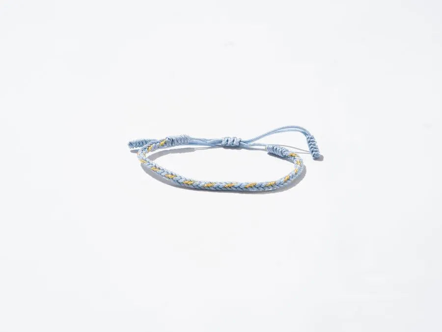 Experience the artistry of Sangha House with our Blue and Gold Woven String Bracelet. Handcrafted for mindfulness, beauty, and good vibes. A must-have for your spiritual collection.