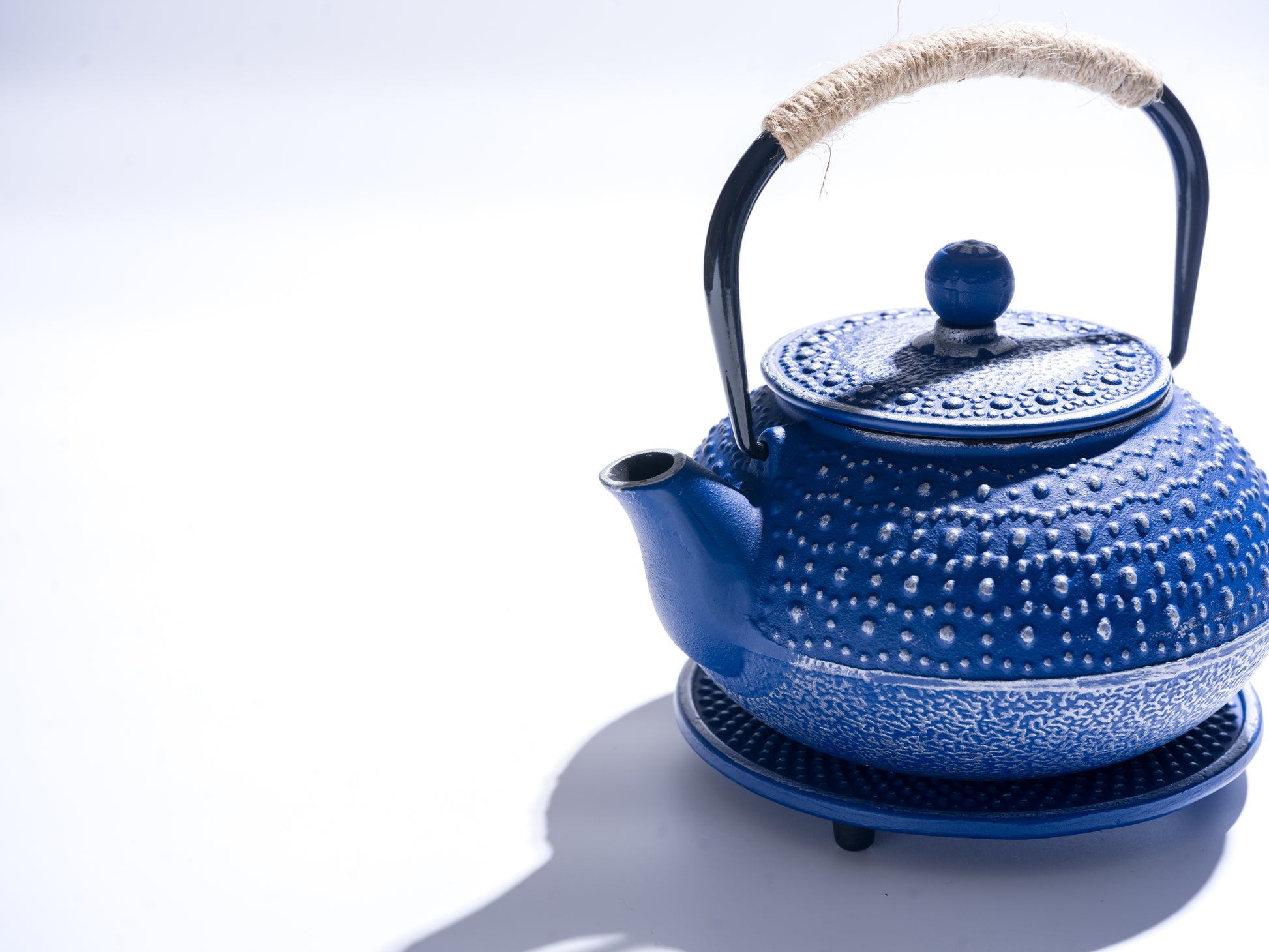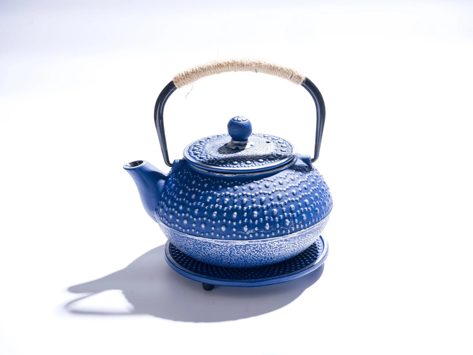 A matching cast iron trivet protects your surfaces while adding a touch of traditional charm. With its rich blue finish and subtle textured pattern, this teapot enhances any space — from tea ceremonies and meditation corners to cozy home kitchens.