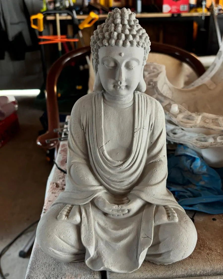 Standing at 12 inches tall, this handmade Buddha statue brings serene energy to any environment — from your meditation altar to your garden or living room. The natural concrete texture offers a minimalist aesthetic, while the statue’s calm expression invites stillness and reflection into daily life.