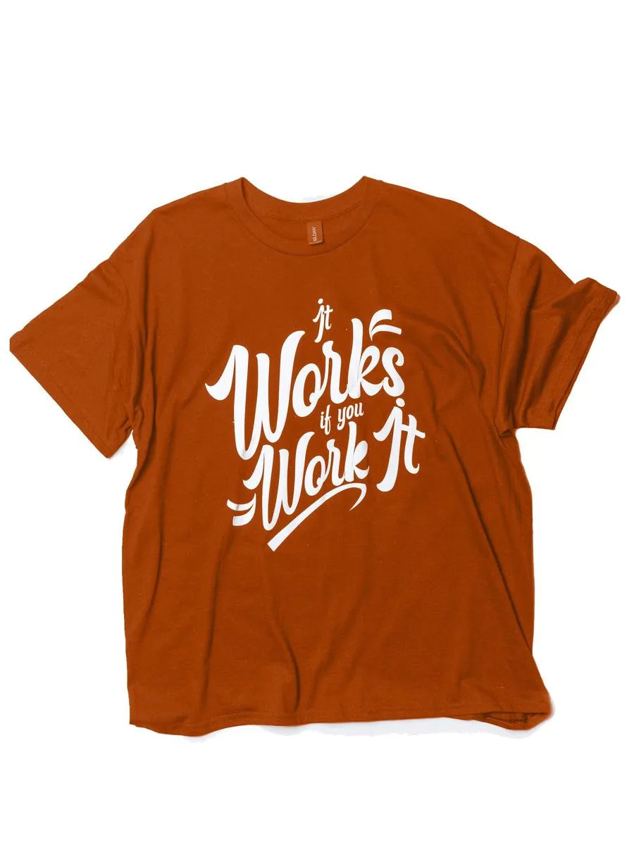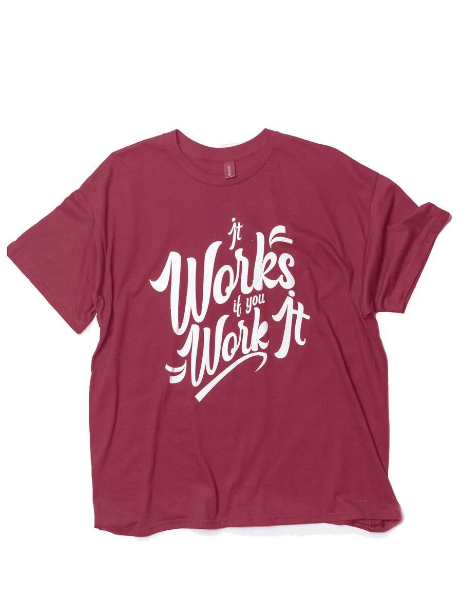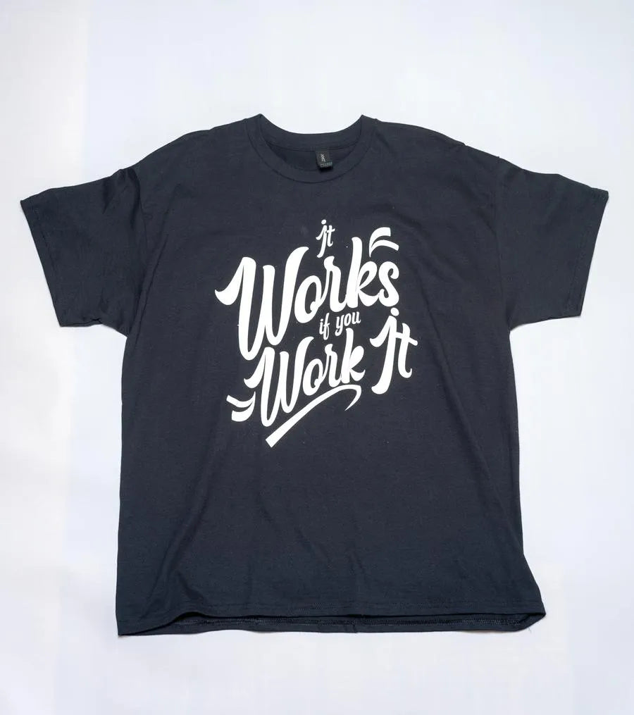 Stay motivated and empowered with our "It Works If You Work It" T-Shirt, handcrafted with care at Sangha House. This bold and inspiring tee serves as a powerful reminder that effort and dedication are the keys to success—whether in recovery, mindfulness, or everyday life. Made from high-quality fabric, this comfortable T-shirt is perfect for anyone committed to putting in the work and living with intention. Handcrafted by the artisans and volunteers at Sangha House, each shirt is designed with purpose and mindfulness, supporting the recovery programs that help individuals transform their lives. Wear this shirt as a symbol of strength, perseverance, and belief in the process. Features: Handcrafted at Sangha House: Lovingly made by residents and volunteers, supporting the recovery and mindfulness initiatives at Sangha House. Inspiring Design: The "It Works If You Work It" message is a powerful reminder of the importance of effort and consistency in achieving your goals. Comfortable & Durable: Crafted from soft, breathable fabric, this T-shirt offers all-day comfort with long-lasting quality. Versatile Wear: Great for everyday use, mindfulness practice, or as a motivating statement piece in your wardrobe. Fabric Options: Cotton T-Shirt, Vinyl Letters Ideal For: Everyday Motivation: Wear this tee to stay inspired and remind yourself to keep working toward your goals. Mindfulness & Recovery: Perfect for those in recovery or on a spiritual journey, offering encouragement and support through its message. Gift Giving: A thoughtful and motivating gift for friends, family, or anyone who values hard work and personal growth. Wear Your Commitment to Growth: The "It Works If You Work It" T-Shirt is more than just a statement—it's a way of life. Handcrafted with care at Sangha House, each purchase supports recovery and mindfulness programs that empower individuals to thrive. Work hard, stay inspired, and make it happen with this empowering tee!