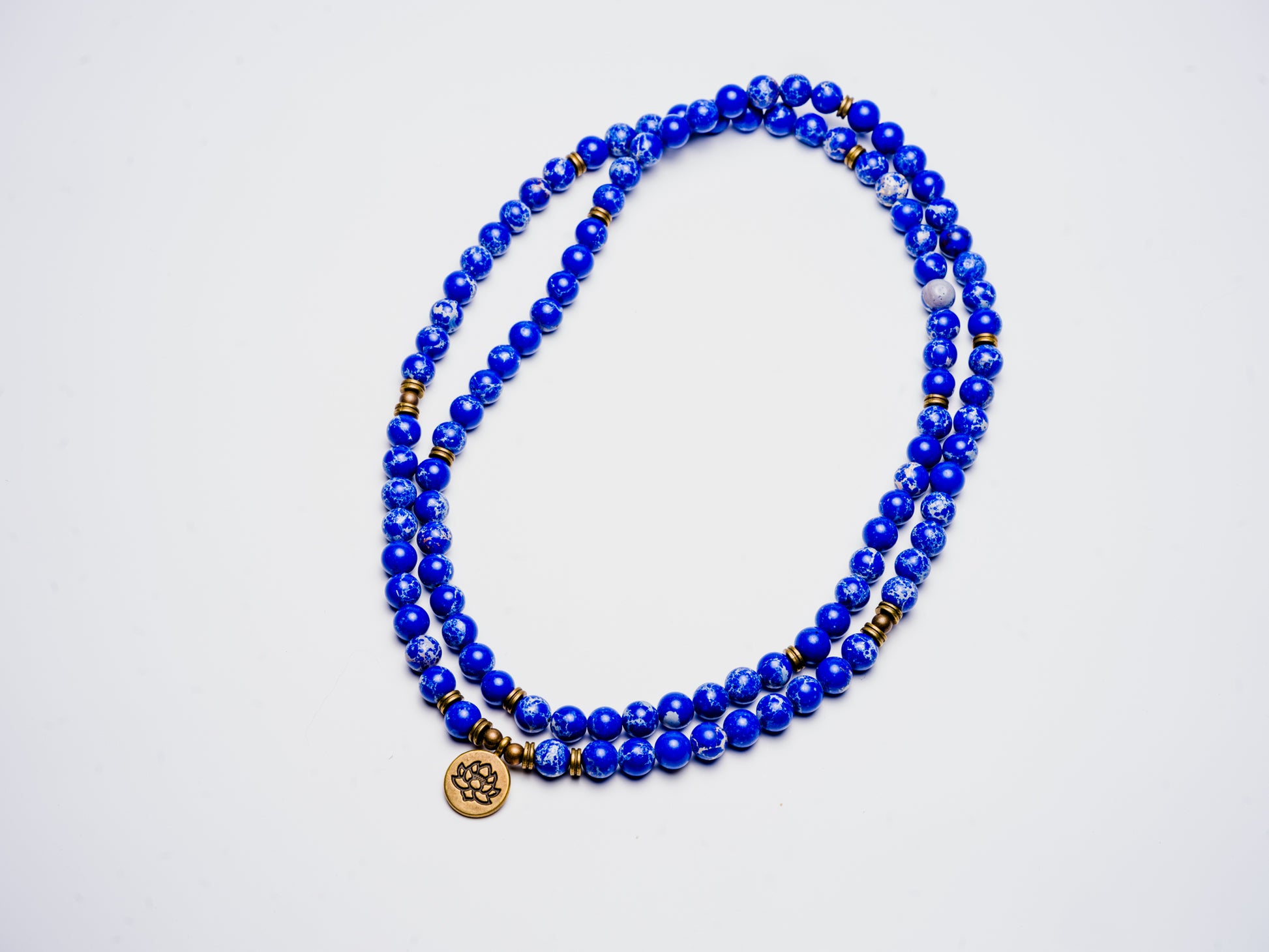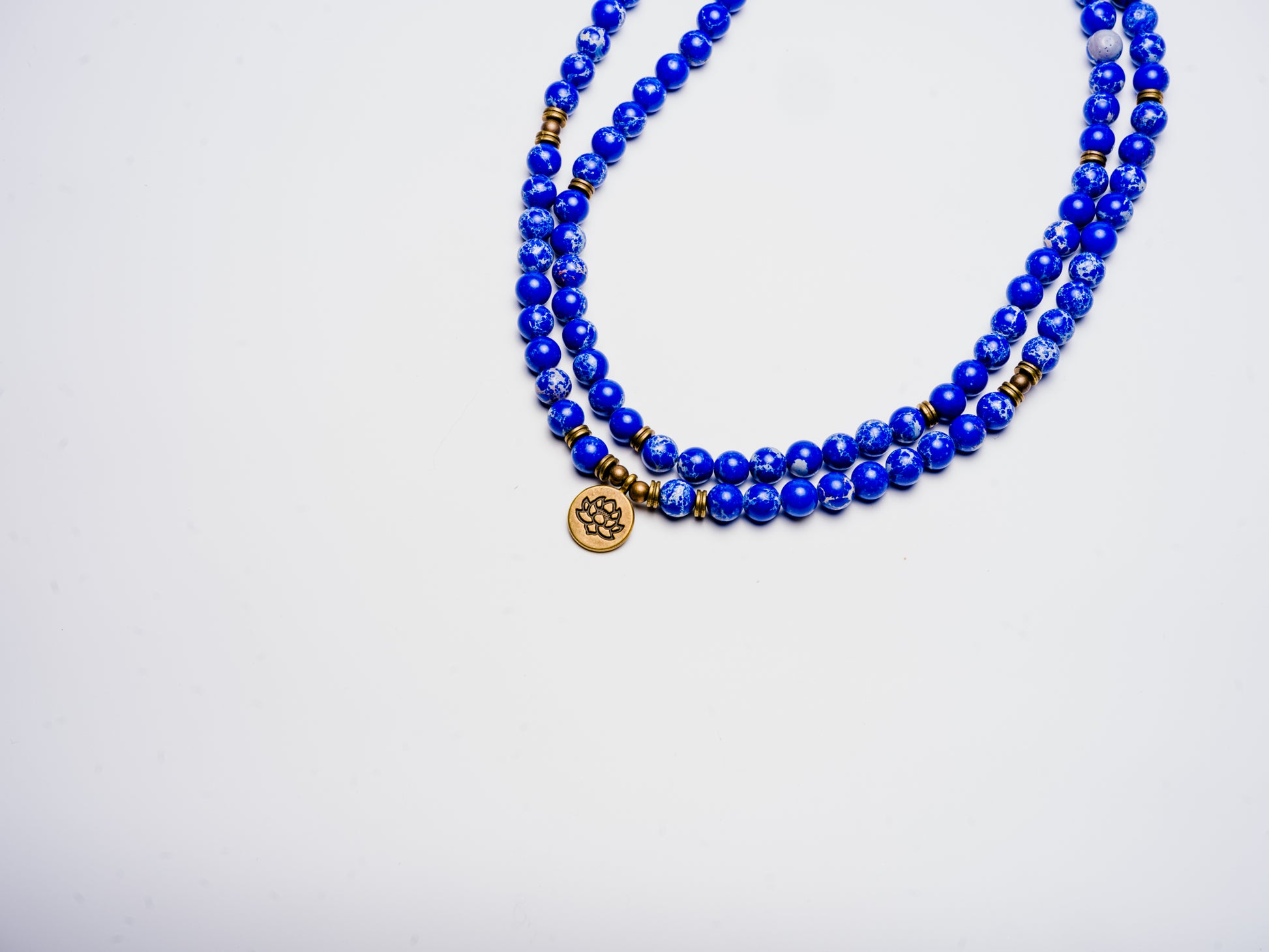 This Lapis Lazuli Mala is hand-knotted with 108 natural gemstone beads, traditionally used for mantra recitation, meditation, and prayer. Lapis Lazuli, revered since ancient times, is known as the stone of insight and inner vision, helping to clear the mind and open the path to truth.