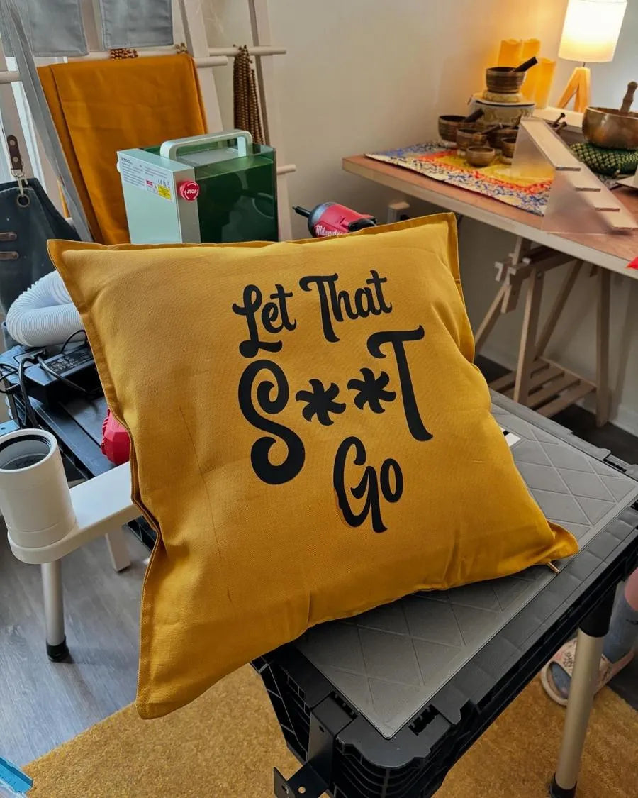 Add a touch of humor and motivation to your home decor with our "Let That S**t Go" Pillow. This bold and playful pillow features a high-quality print of the empowering message "Let That S**t Go," reminding you to release negativity and embrace positivity. Made from soft, durable fabric with a plush filling, it offers both comfort and style. Perfect for your living room, bedroom, or office, this pillow not only serves as a fun conversation starter but also provides a daily dose of inspiration. Whether for yourself or as a unique gift, this pillow is a chic and cheeky addition to any space.