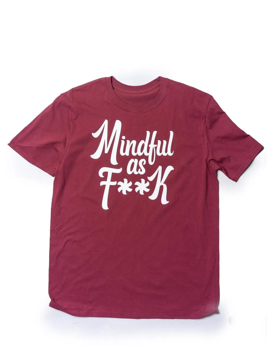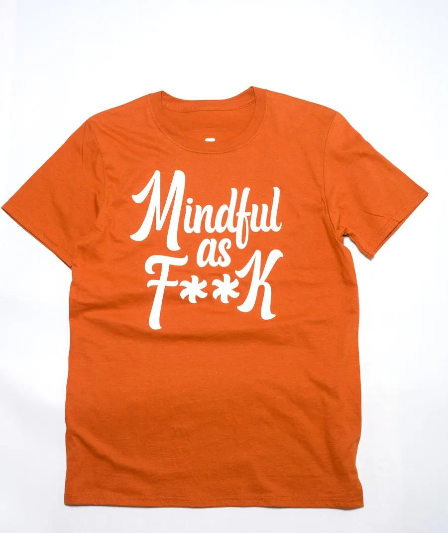 Boldly express your commitment to mindfulness with our Mindful As F**K T-Shirt, handcrafted with care at Sangha House. This unapologetic and empowering design combines edgy style with spiritual awareness, making it the perfect shirt for those who live mindfully and aren’t afraid to show it. Made from soft, high-quality fabric, this T-shirt is as comfortable as it is eye-catching. Handcrafted by the artisans and volunteers at Sangha House, each shirt reflects a blend of creativity, mindfulness, and purpose. Wear it as a reminder to stay present and embrace the power of mindfulness in every moment of your life. Features: Handcrafted at Sangha House: Lovingly made by residents and volunteers, supporting the recovery and mindfulness programs at Sangha House. Bold & Empowering Design: The "Mindful As F**K" graphic is a fun and unapologetic expression of living mindfully, perfect for anyone who embraces mindfulness with a twist. Comfortable & Durable: Made from soft, breathable fabric that feels great on the skin and is built to last. Versatile Wear: Great for yoga classes, meditation sessions, or as a casual, everyday statement piece. Fabric Options: Material: Cotton Shirt, Vinyl Lettering Ideal For: Everyday Wear: A comfortable, stylish T-shirt that reminds you to stay mindful and present. Yoga & Meditation: Perfect for your mindfulness practice, whether on the mat or during meditation. Gift Giving: A fun and empowering gift with a bold twist for anyone who appreciates mindfulness. Make a Statement with Mindfulness: The Mindful As FK T-Shirt** is more than just clothing—it’s a declaration of your commitment to mindfulness and living with intention. Handcrafted with care at Sangha House, every purchase supports a meaningful cause while letting you proudly wear your mindfulness. Wear it. Live it. Own it.