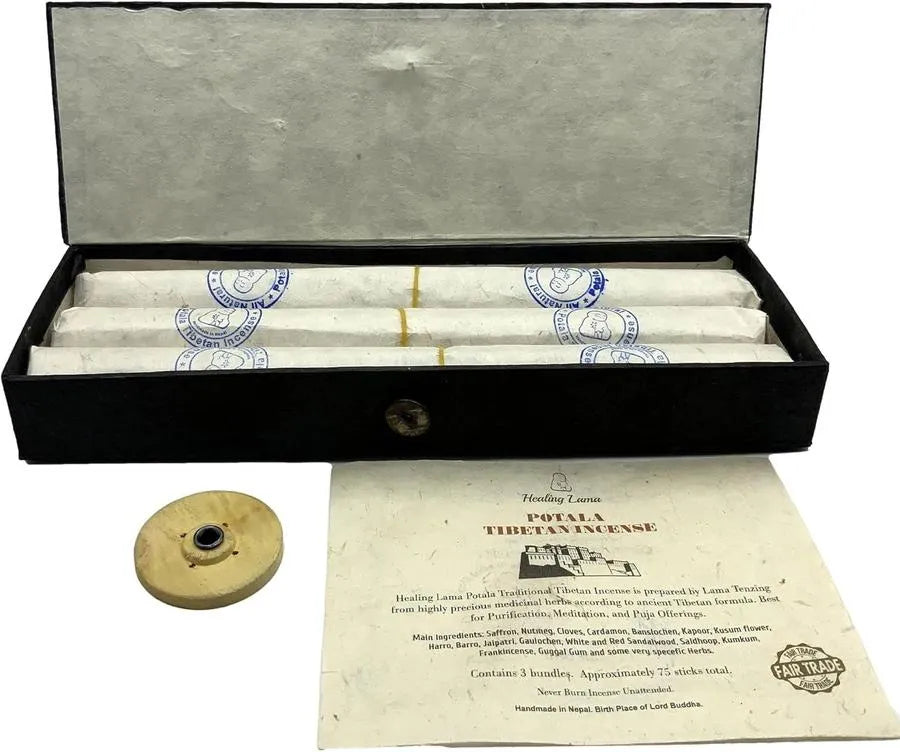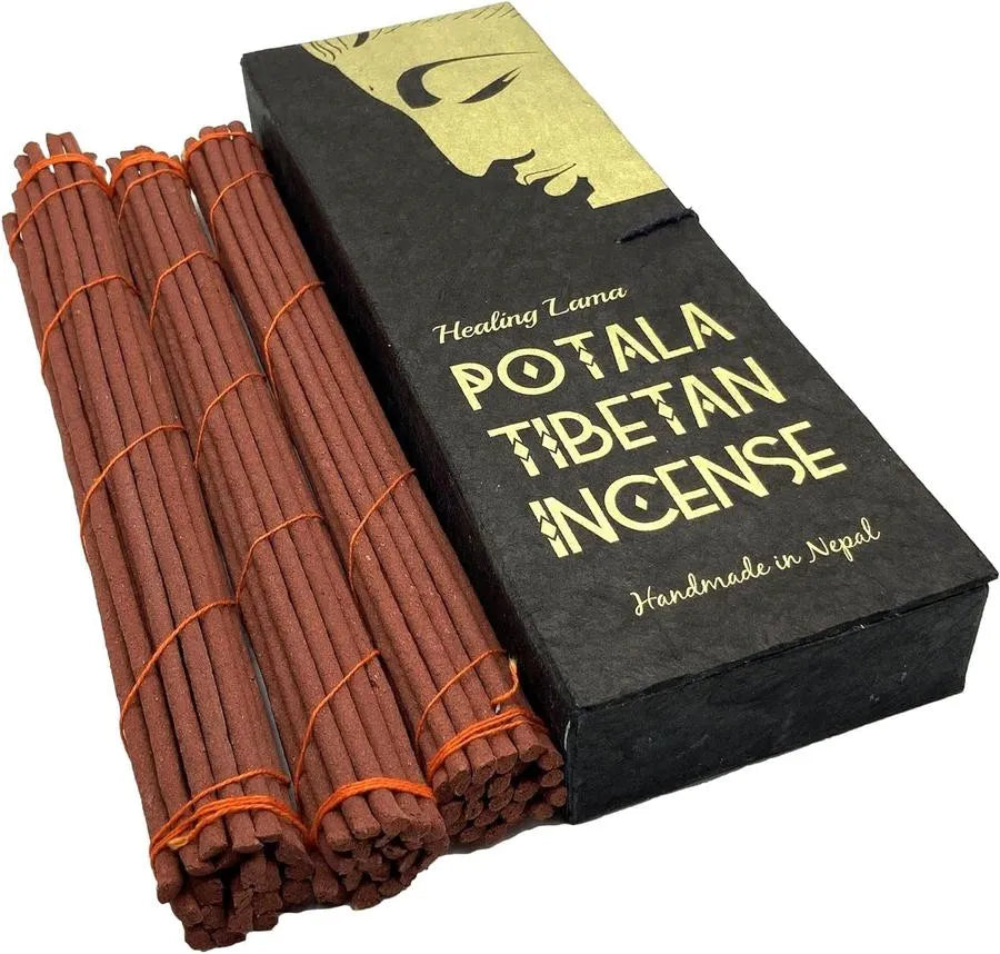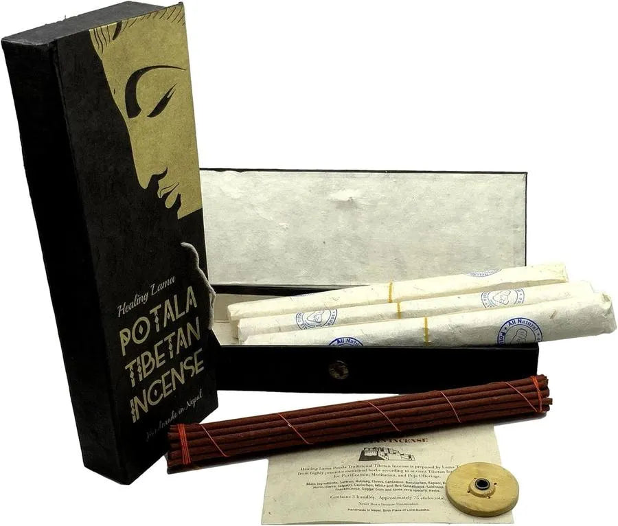 Large 3 Bundles Set. 60 Plus Sticks. 10 Inches Long. 3 Bundles of 20 Plus sticks. Total 60 Plus Sticks. Each Incense Stick is 10 Inches Long and lasts for About 1 Hour.Our exclusive Dhyana Incense is a blend of precious aromatic herbs specially formulated by Lama Tenzing according to centuries old Tibetan recipe. Main Ingredients: Saffron, Nutmeg, Cloves, Cardamon, Banslochen, Kapoor, Kusum flower, Harro, Barro, Jaipatri, Gaulochen, White and Red Sandalwood, Saldhoop, Kumkum, Frankincense, Guggal Gum and some very specefic Herbs. Healing Lama Potala Traditional Tibetan Incense is prepared by Lama Tenzing from highly precious medicinal herbs according to ancient Tibetan formula. Best for Purification, Meditation, and Puja Offerings. All Healing Lama Traditional Tibetan Incenses are prepared in small batches and are Packed in a Beautiful Hand crafted Lokta Paper Box Makes Great Gifts to anyone who practices Dhyana,Yoga, Zen Meditation and Aromatherapy. They will love it. Guaranteed. Get one for yourself or as a gift to loved ones and feel the difference. Please also note that these incenses have no binders and core bamboo sticks inside, so few broken pieces are normal. Please use these broken pieces if you want to burn it for shorter period of time.