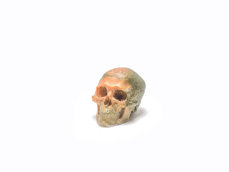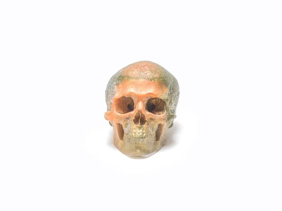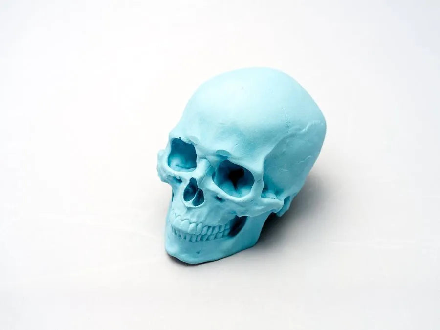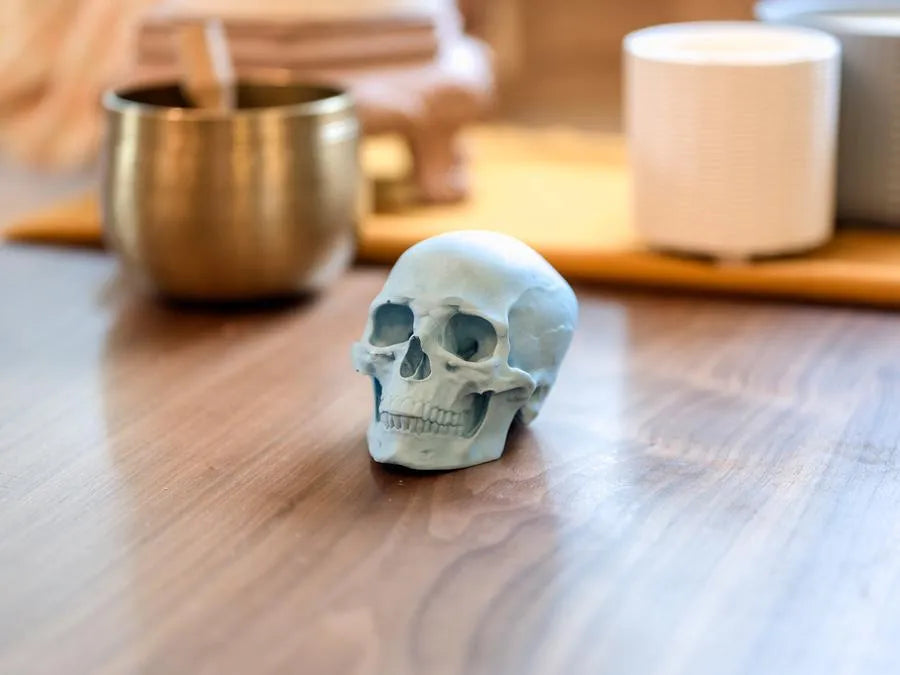 Embrace the profound concept of impermanence with our striking Skull Sculpture, meticulously handcrafted from high-quality resin. Standing at 4 inches tall, this unique piece serves as a powerful reminder of the transient nature of life, blending artistry with deep philosophical significance. Crafted by the skilled residents and volunteers at Sangha House, each skull is carefully molded and finished, ensuring a one-of-a-kind piece that reflects both precision and creativity. The vibrant blue color adds a modern touch to the traditional symbolism, making it a captivating addition to any home, office, or meditation space. Features: Handcrafted Quality: Each skull is handmade with attention to detail, showcasing the dedication and craftsmanship of its creators. High-Quality Resin: Made from durable, high-quality resin that ensures longevity while maintaining a smooth, polished finish. Symbolic Design: The skull represents impermanence, reminding us of the fleeting nature of life and the importance of living mindfully. Vibrant Colors: The striking hues adds a contemporary flair, making it a standout piece in any decor setting. Perfect Size: At 4 inches tall, this sculpture is the ideal size for display on desks, shelves, altars, or as a unique decorative piece. Dimensions: Height: 4 inches Width: 2 inches Depth: 3 inches Care Instructions: Cleaning: Wipe with a soft, dry cloth to keep the sculpture looking its best. Avoid using harsh chemicals or abrasive materials. Placement: Place in a dry area, away from direct sunlight to preserve its color and finish. Meaning and Use: Meditative Focus: Use the Blue Skull Sculpture as a focal point during meditation to contemplate the nature of impermanence and the importance of living in the present moment. Decorative Accent: Enhance your home or workspace with this meaningful and aesthetically pleasing piece, sparking conversations and reflections on life's transient beauty. Thoughtful Gift: Share the profound message of impermanence with friends and loved ones by gifting this unique sculpture, perfect for those who appreciate mindful living and philosophical depth. By choosing our Skull Sculpture, you not only bring a piece of meaningful art into your life but also support the artisans at Sangha House. Each purchase helps fund recovery and mindfulness programs, fostering healing and holistic living in our community.
