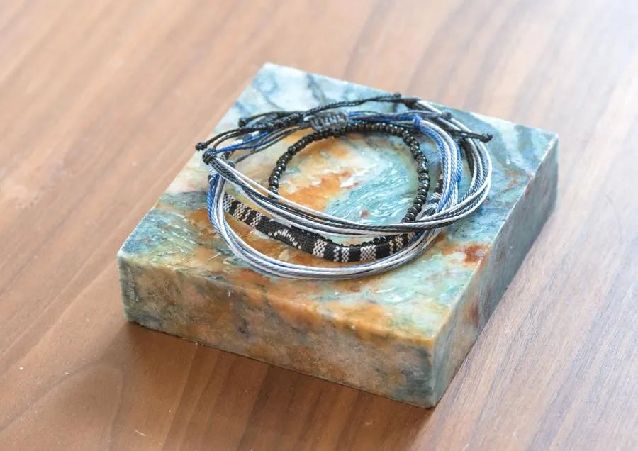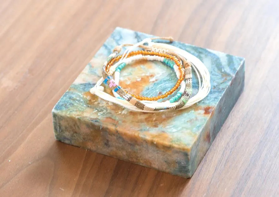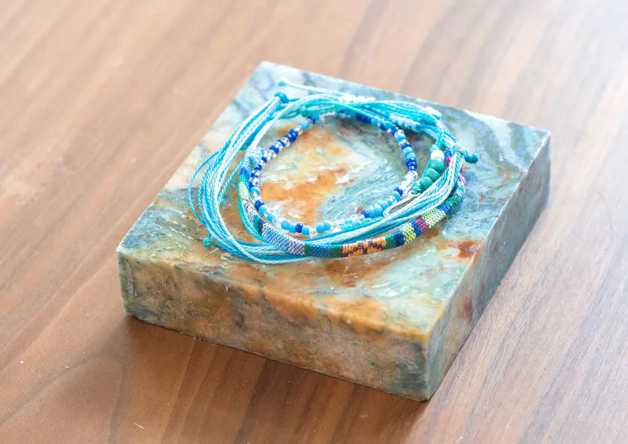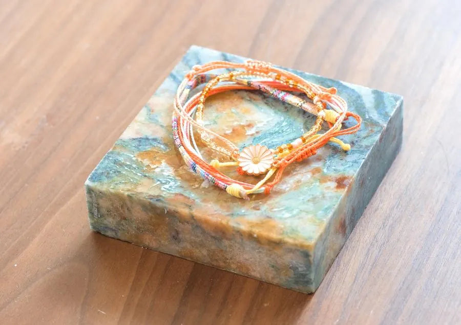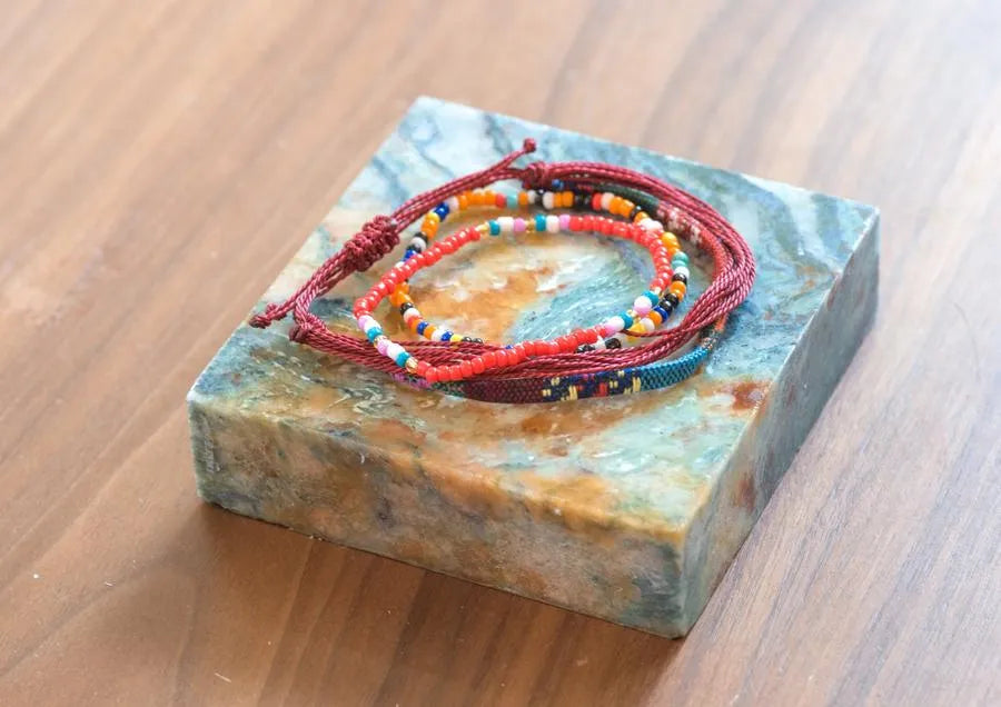 Embrace the spiritual symbolism and vibrant colors of our String Bracelet Collection Bundle, featuring five beautifully handcrafted pieces representing revered Buddhist deities. Each bracelet in this collection is designed to inspire and remind you of the qualities and blessings associated with Green Tara, White Tara, Padmasambhava, Chenrezig, Mahakala, and Medicine Buddha. Handmade by the skilled residents and volunteers at Sangha House, these string bracelets combine artistry with meaningful intent, making them perfect for daily wear, meditation, or as thoughtful gifts for loved ones. Features: Handcrafted Quality: Each bracelet is meticulously handcrafted with care, ensuring a unique and high-quality piece that carries the positive intentions of its makers. Vibrant Colors and Symbolism: Green Tara (Teal): Symbolizes compassion in action, swift protection, and overcoming obstacles. White Tara (White): Represents long life, healing, and serenity. Padmasambhava (Red): Embodies spiritual transformation, protection, and wisdom. Chenrezig (Tan): Symbolizes infinite compassion, mercy, and altruism. Mahakala (Black): Offers powerful protection, strength, and the removal of obstacles. Medicine Buddha (Orange): Represents healing, wellness, and vitality. Adjustable Fit: Designed to fit comfortably on any wrist, each bracelet features an adjustable knot for easy sizing. Durable Materials: Made from high-quality string, ensuring durability and long-lasting wear. Supports a Cause: Each purchase supports the recovery and mindfulness programs at Sangha House, a Buddhism-influenced community center and recovery house in Chicago, IL. Dimensions: Length: Adjustable to fit most wrist sizes Care Instructions: Cleaning: Wipe gently with a soft, dry cloth. Avoid exposing the bracelets to water or harsh chemicals to preserve their color and quality. Storage: Store in a dry place when not in use to maintain their appearance and durability. Ideal For: Daily Wear: Carry the blessings and qualities of these revered deities with you throughout your day. Meditation and Reflection: Use during meditation or mindfulness practices to enhance focus and spiritual connection. Gift Giving: Perfect as meaningful gifts for friends and loved ones who appreciate spiritual symbolism and handcrafted beauty. Enhance your spiritual journey and adorn your wrist with the vibrant colors and powerful symbolism of our String Bracelet Collection Bundle. Each set is more than just an accessory; it is a reminder of the qualities and blessings you wish to cultivate in your life, crafted with love and intention by the artisans at Sangha House.