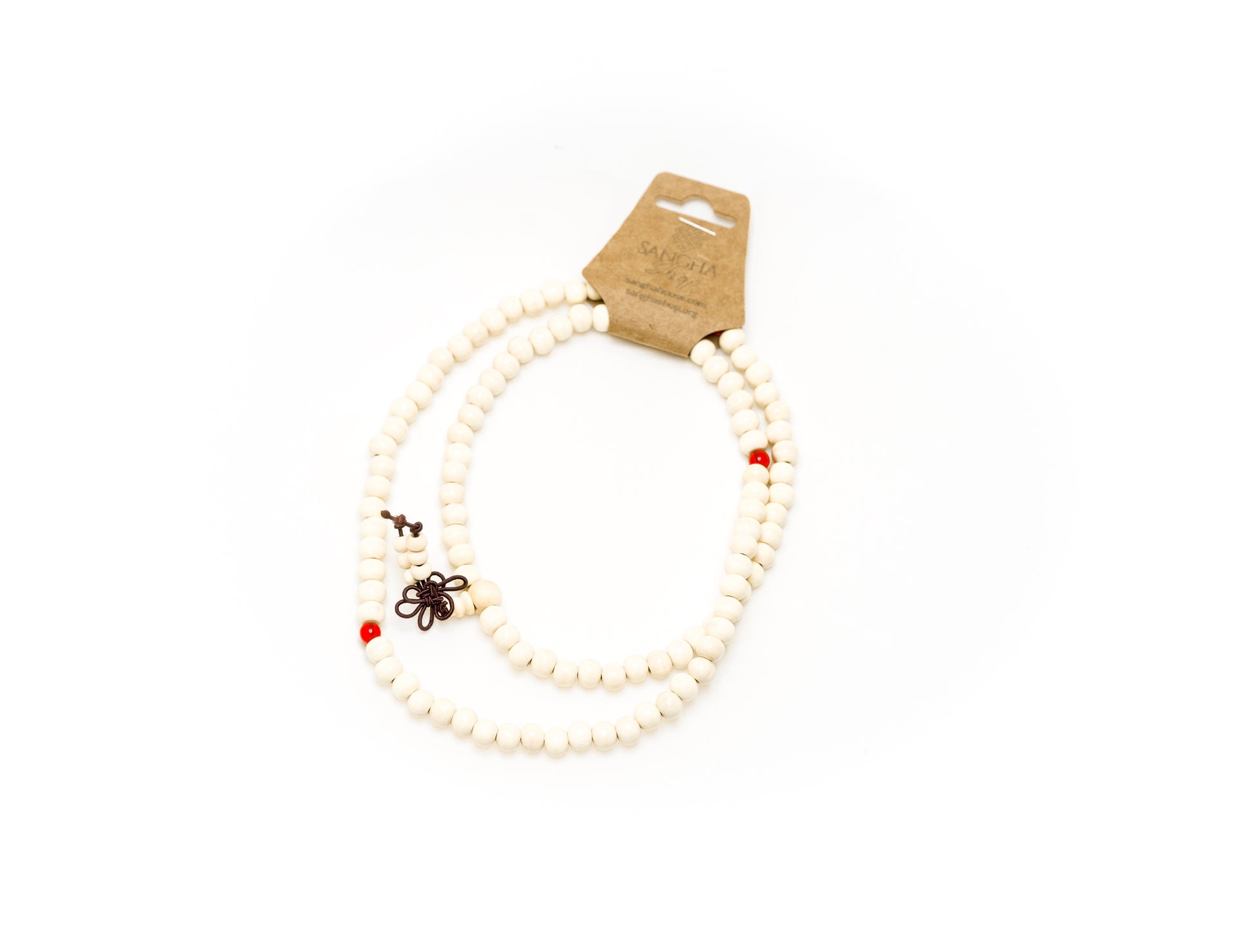 This White Bead Tibetan Mala features 108 hand-strung beads, a sacred number in Buddhist practice. White malas symbolize purity, balance, and spiritual clarity, making them ideal for those seeking focus and calm in meditation.